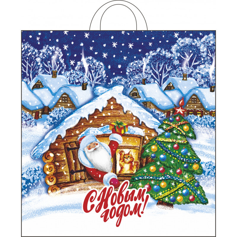 Пакет новогодний ПВД с петлевой ручкой "Избушка" НГ4042Из