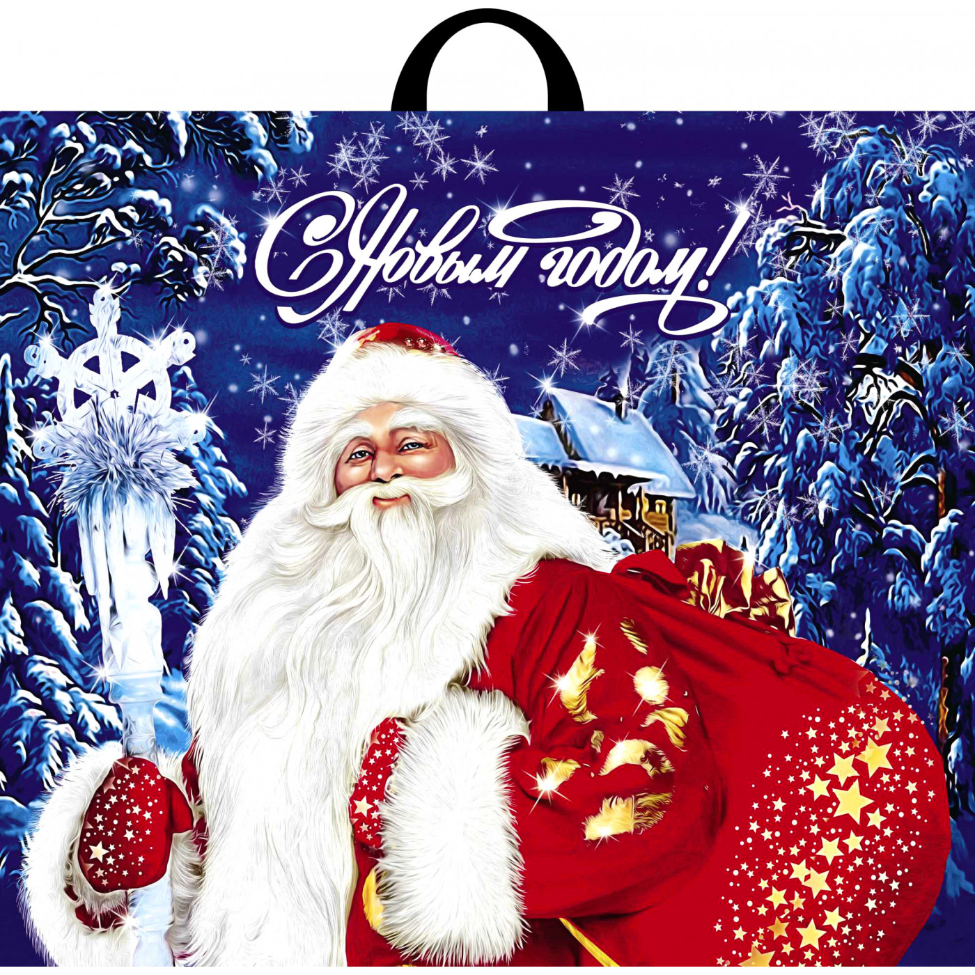 Пакет новогодний ПВД с петлевой ручкой "Новогодний визит" НГ6050Нв