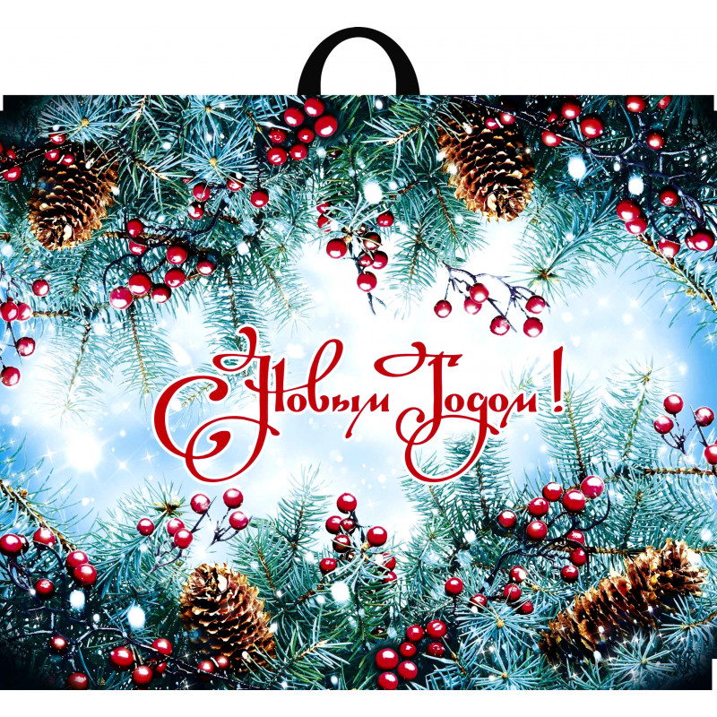 Пакет новогодний ПВД с петлевой ручкой "Голубая ель" НГ7155Ге