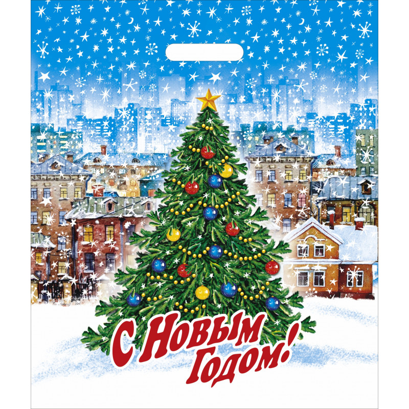 Пакет новогодний ПВД с вырубной ручкой "Городская ёлка" НГ4047Ге