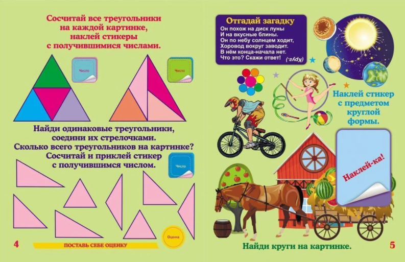 Книжка с обучающими наклейками "Загадочная геометрия" 6655а