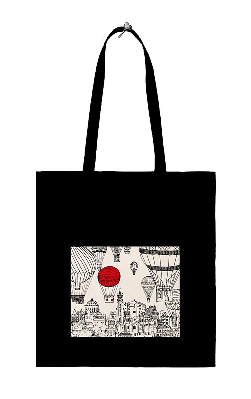 Сумка-шоппер с карманом "Шары над городом" 35х42см (хлопок) 0432.098цвет черный/беж