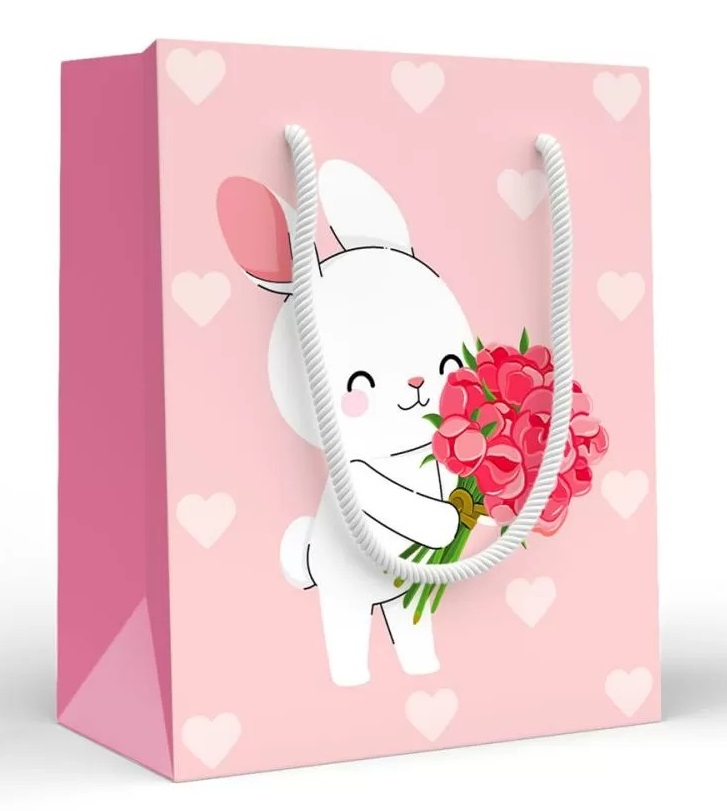 Бумажные подарочные пакеты "Зайка с букетом" 15.11.02291