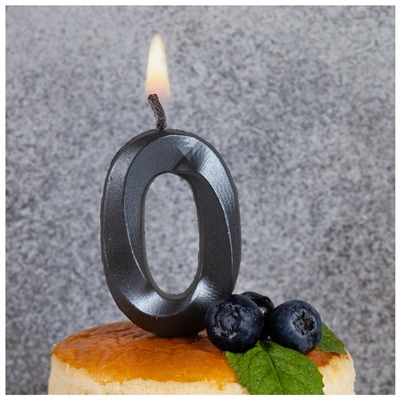 Свеча -цифра "0" Грань черный жемчуг 1502-6575