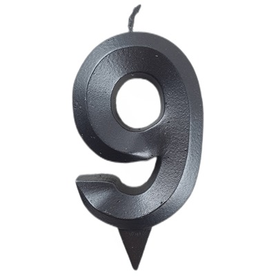 Свеча -цифра "9" Грань черный жемчуг 1502-6584