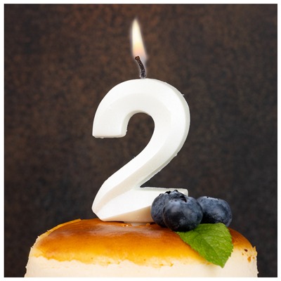 Свеча -цифра "2" Грань белый жемчуг 1502-6587