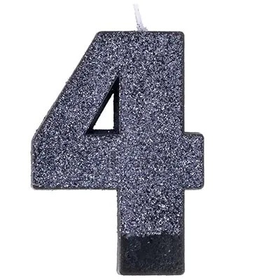 Свеча цифра "4" Черная Глиттер 1502-4662