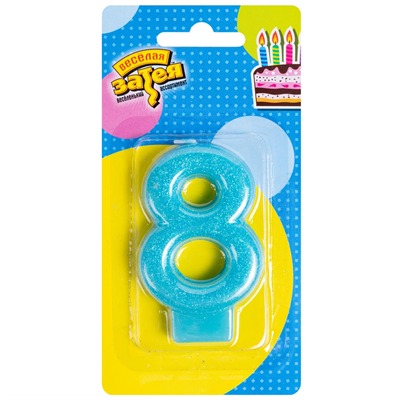 Свеча-цифра 8 "Блестящая. Голубой" 1502-2154