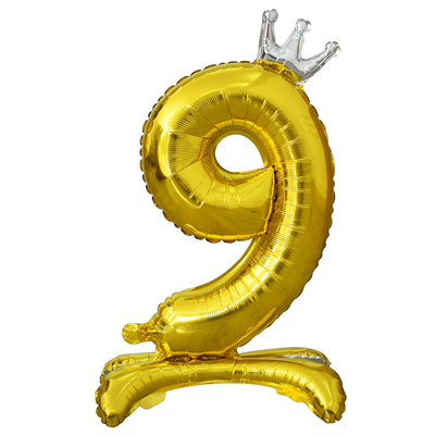 Фольгированный шар "9" цвет Gold Золотой на подставке Корона 1207-4952